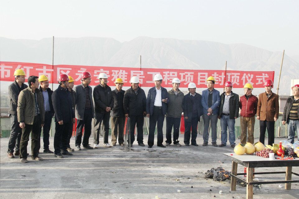 2015年11月15日早上九點十八分,在鞭炮和禮花齊放的轟隆聲中,蘭州市紅古區平安鎮永安雅居第四標段(6/7/8)#樓封頂儀式圓滿落幕。