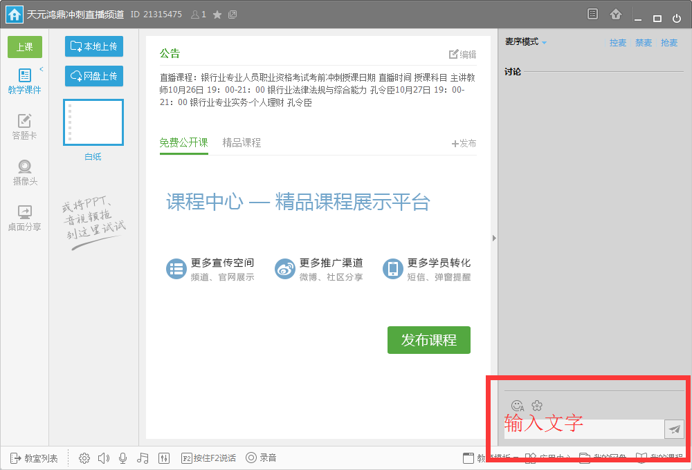 進(jìn)入頻道后可以在右下角輸入文字進(jìn)行提問(wèn)。