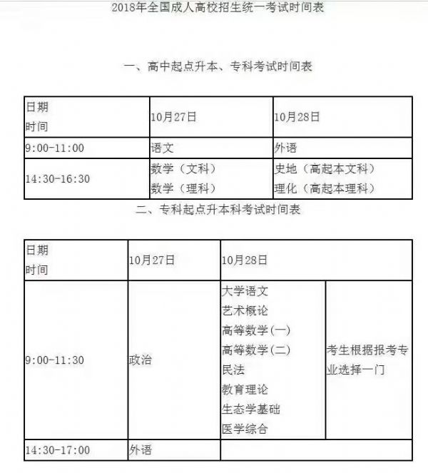 關于2018年成人高考考試最新通知