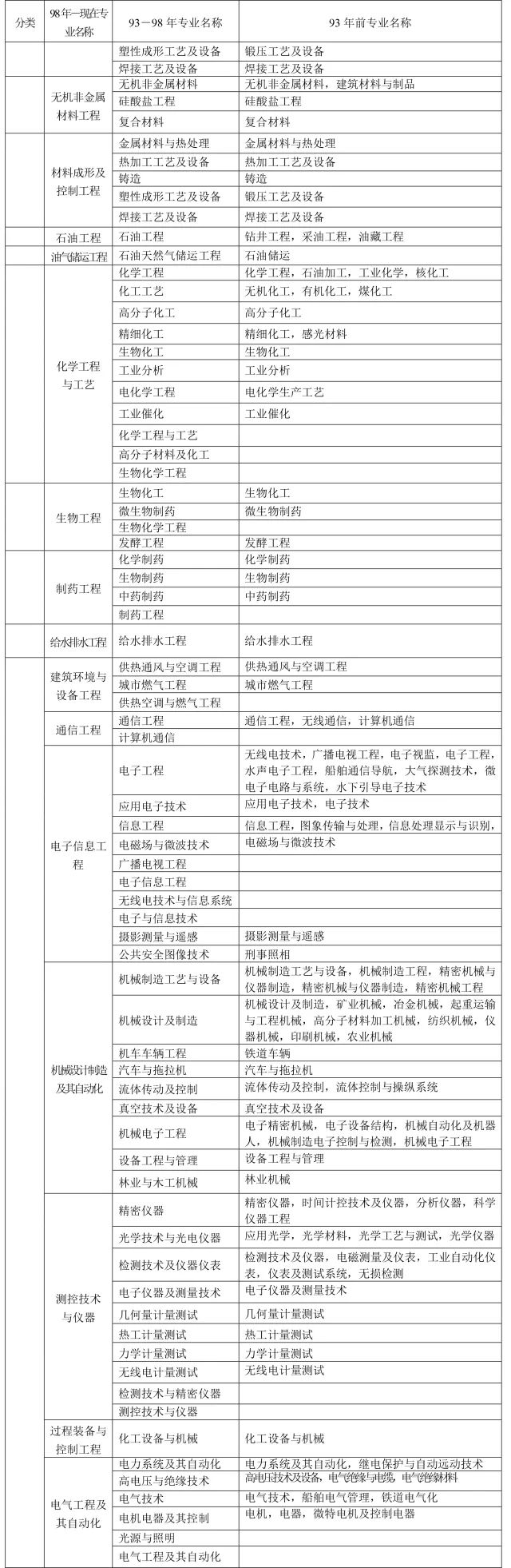 1、本表按教育部現(xiàn)行《普通高等學(xué)校本科專(zhuān)業(yè)目錄新舊專(zhuān)業(yè)對(duì)照表》編制,共涉及“土建類(lèi)、測(cè)繪類(lèi)、水利類(lèi)、交通運(yùn)輸類(lèi)、能源動(dòng)力類(lèi)、地礦類(lèi)、材料類(lèi)、電氣信息類(lèi)、機(jī)械類(lèi)、管理科學(xué)與工程類(lèi)、生物工程類(lèi)、化工與制藥類(lèi)、工程力學(xué)類(lèi)”等18類(lèi)45個(gè)專(zhuān)業(yè),其中本專(zhuān)業(yè)36個(gè),相近專(zhuān)業(yè)9個(gè)。