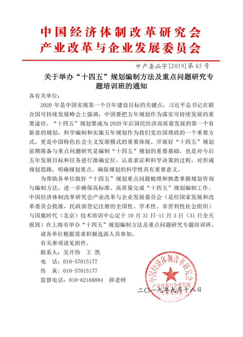 本期培訓班擬邀請國家發改委“十四五”規劃總體思路起草專家組成員、發改委宏觀經濟研究院、清華大學、中咨協、規劃評估等機構的領導和專家進行授課。以領導、專家授課為主,通過最新政策動向介紹、專題輔導、典型經驗交流、現場互動等方式相結合,培訓班將提供最新參考資料。