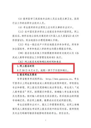 9月2日-9月8日,未按時繳費或未進行現場確認的考生,其網上報名無效。