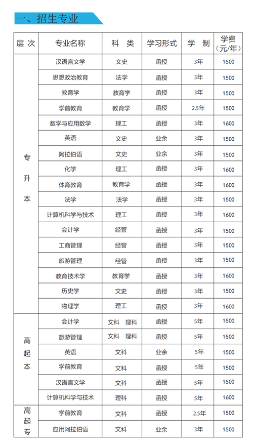 西北師范大學繼續教育學院主要從事全校高等學歷繼續教育、 高等教育自學考試和各類非學歷教育培訓工作。開設專升本、高起 本、高起專,包括學前教育、教育技術學、漢語言文學、計算機科 學與技術、工商管理等25個專業。目前,各類在校學生34000余 人,已形成了較為完善的繼續教育體系。學院主動適應國家戰略和 區域經濟社會發展需要,按照“創新發展、規范管理、提升質量、 服務社會”的指導方針,堅持“立足教育行業、聚焦重點領域、面 向重點人群,扎根西部、服務全國”的辦學定位,以不斷滿足社會 各類人員繼續教育需求為導向,以學習者職業能力提升為重點,培