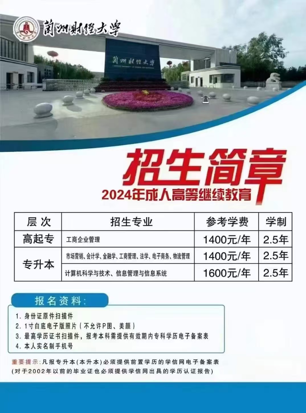 蘭州財經(jīng)大學(xué)繼續(xù)教育學(xué)院是學(xué)校負(fù)責(zé)統(tǒng)籌協(xié)調(diào)、組織管理高等學(xué)歷繼續(xù)教育、非學(xué)歷教育培訓(xùn)的機構(gòu), 兼具辦學(xué)和管理職能。經(jīng)過多年的發(fā)展,逐步構(gòu)建了辦學(xué)形式多樣化、辦學(xué)層次多元化、專業(yè)設(shè)置科學(xué)化、 教學(xué)管理統(tǒng)一化、管理手段信息化、區(qū)域分布合理化的繼續(xù)教育辦學(xué)體系, 曾多次被原國內(nèi)貿(mào)易部、省教育 廳、省考試院、職業(yè)與成人教育協(xié)會評為先進單位。學(xué)院現(xiàn)有省內(nèi)教學(xué)站點 16 個,學(xué)歷繼續(xù)教育在校生 1.3 萬余人。